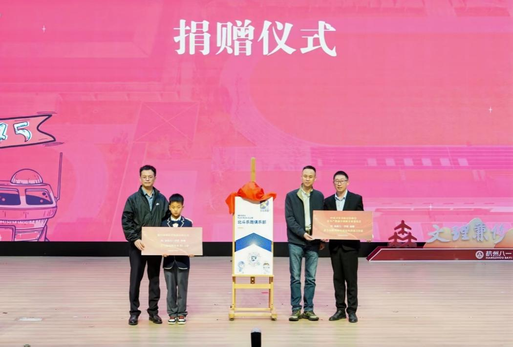 huodongxianchang,hangzhoubayixuexiaobeidoulepaojulebuzhengshijiepai,zhuanweihuiyubeidouaoxiangdaibiaogongtongjiepai,bingxiangxuexiaojuanzengbeidoulepaozhuanyeshebeiyuhangtiankeputushu,tuidongbeidoukepuziyuanjingzhunluodixiaoyuan。zhuanweihuimishuchangtangshuangquanzaizhicizhongbiaoshi,beidoulepaoshijiangbeidoushikongzhinengjishuyuquanminjianshen、青少年健康教育深度融合的創新實踐,依托高精度定位、智能導航等技術,把傳統跑步升級為集科技體驗、知識闖關、趣味互動於一體的新型運動模式,讓青少年在運動中觸摸科技、強健體魄、快樂成長。俱樂部落地八一學校,是踐行青少年“五健”促進行動計劃、落實“健康中國”“體育強國”“科技強國”戰略的校園實踐,助力同學們在科技與運動的雙重滋養下全麵發展。